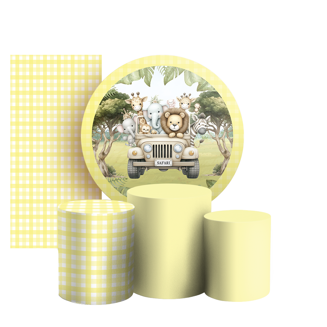 Arte Digital Painel de Festa - Safari Xadrez Amarelo 804909