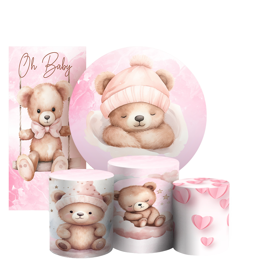 Arte Digital Painel de Festa - Ursinha Rosa 802857